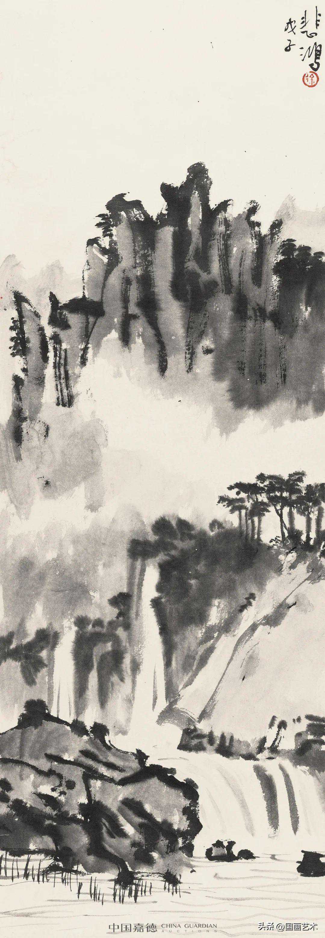 齐白石曾在《老萍诗草》中说:“山水画要无人所想得到处,故章法位置总要灵气往来,非前清名人苦心造作。山水笔要巧拙互用,巧则灵变,拙则浑古,合乎天趣。”白石山水主张形而上的灵动之气,其章法之妙趣天成、用笔之神采为上,蕴含着浓郁的文人画气息和山水意境,代表了近代山水画发展的巅峰,承载着传统山水画过渡至现代水墨艺术的桥梁。