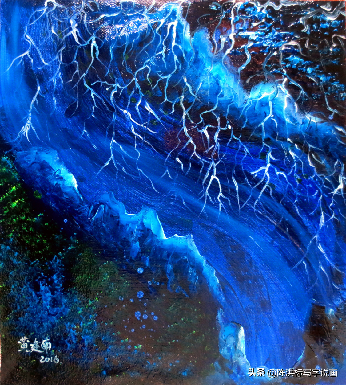 ▲黄建南油画作品《梦境玉湖》。