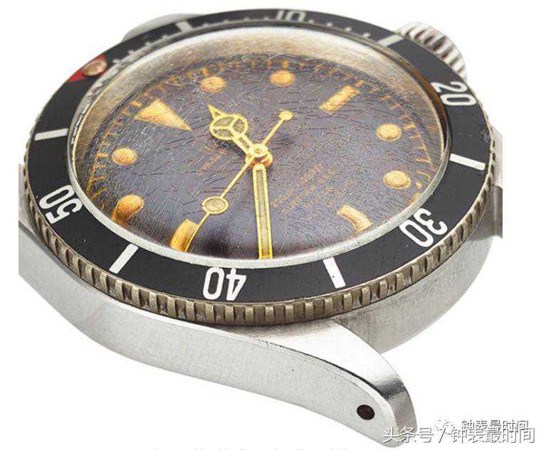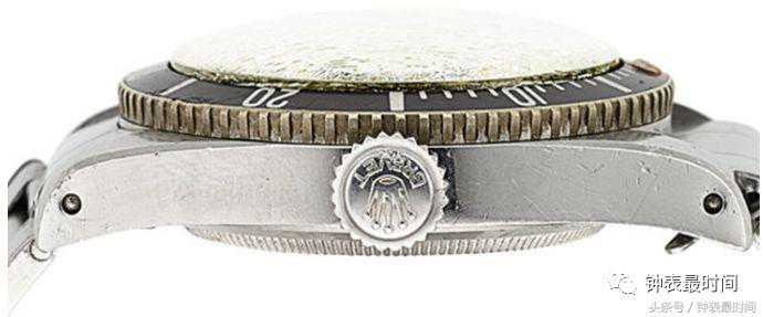 这款大表冠表况磕碰严重,有明显的使用痕迹,好在表壳棱角清晰可见,并没有影响到被拍出天价。