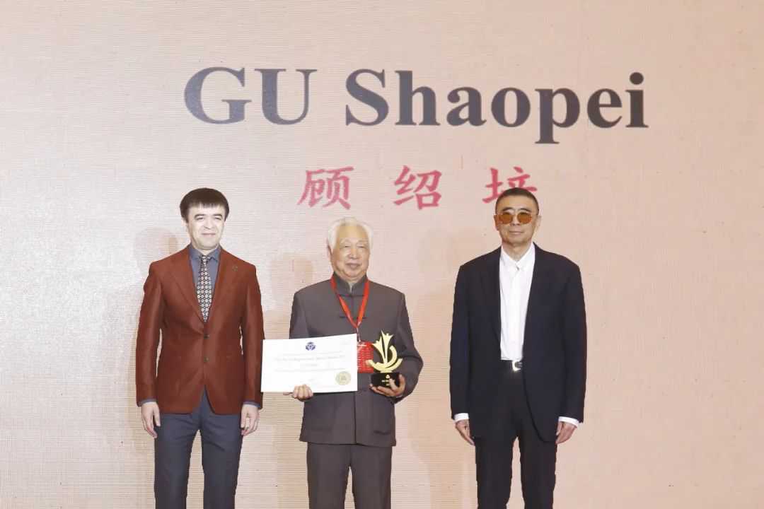 ▲中国工艺美术大师顾绍培领取亚太地区手工艺大师证书