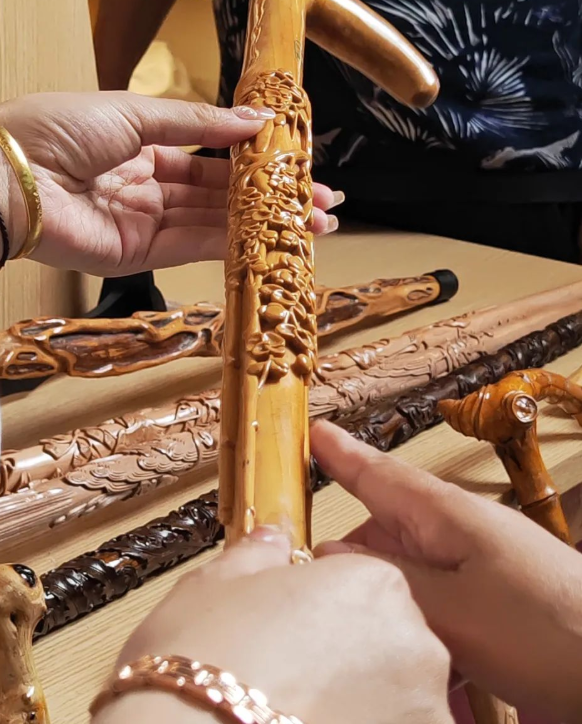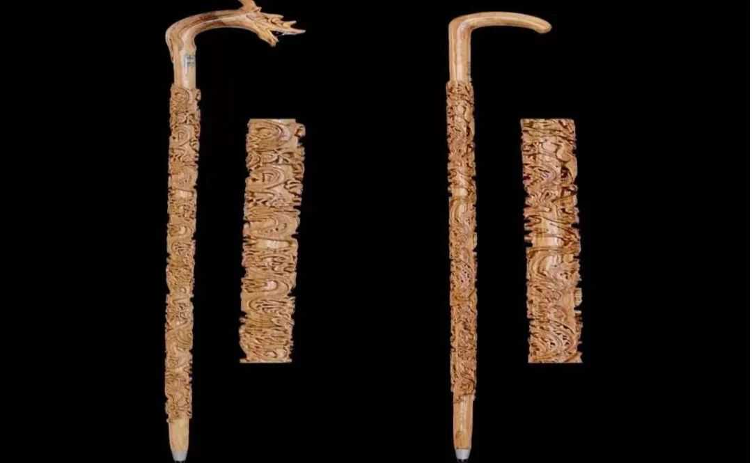 每一根手杖上都盘着立体精巧的图案