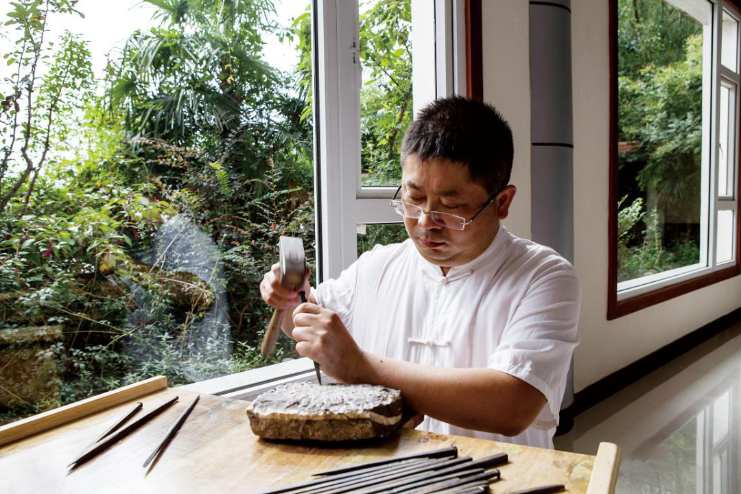当地石刻艺人因材施艺