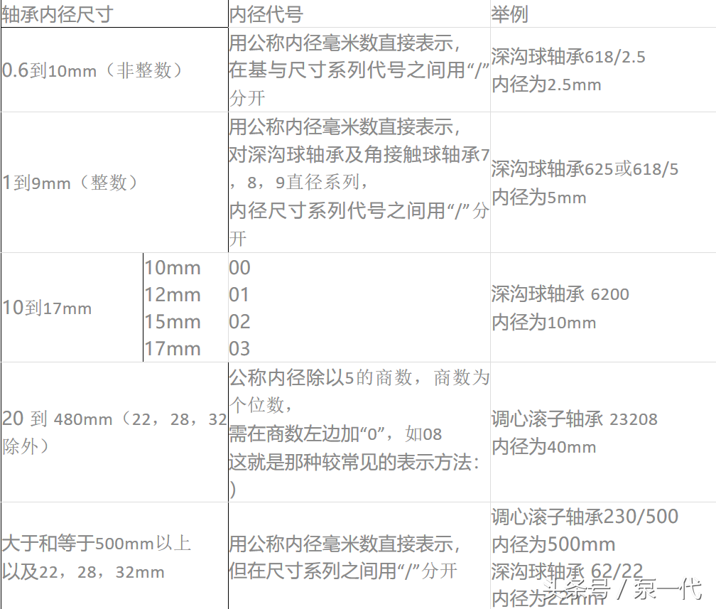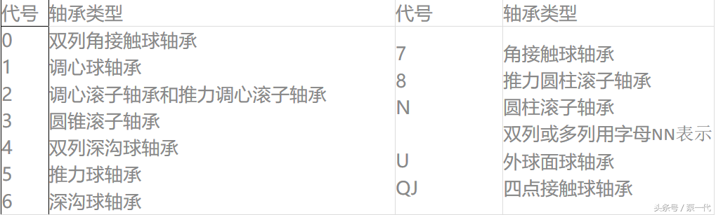 轴承基本代号由轴承类型代号、尺寸系列代号、内径代号构成。