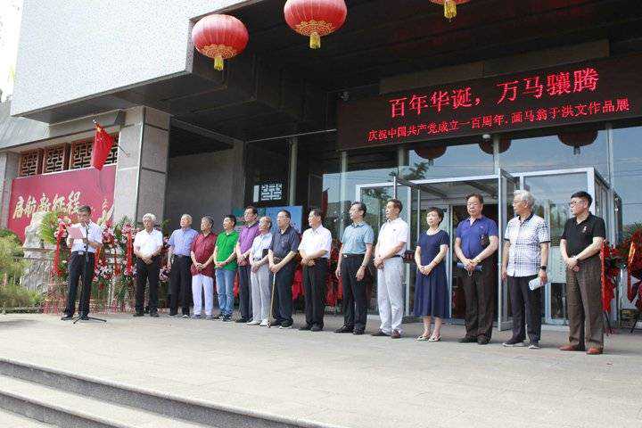 2021年6月19日上午九点半,为庆祝中国共产党成立一百周年,由山东老年书画研究会、山东当代书画摄影艺术交流中心共同主办的《百年华诞,万马骧腾一一庆祝中国共产党成立一百周年.画马翁于洪文作品展》在济南市博物馆隆重举行开幕式。!