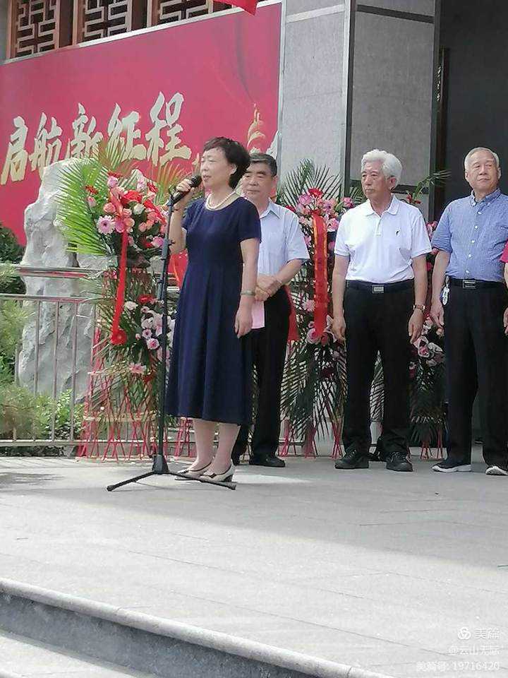开幕式在展厅大门台阶上举行。上方电子屏打出展览名称,大门两旁摆放着十几个鲜花盛开的花篮。这里有个小插曲。事先我在群里和亲朋中反复强调不要送花篮。可是没想到,儿子单位不让儿子知道,头天下午把花篮送来了。这样一来,一些人一看,"禁令"打破了。一下子忽拉送来十几对。有回族诗会的,有群友肖连平,王捷老师的,有亲朋好友的,我想挡也挡不住了。这些花篮为开幕式烘托了喜庆气氛,显得更加光彩照人。