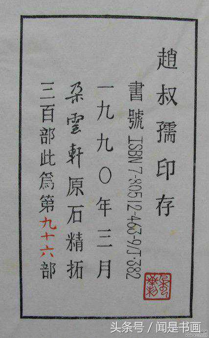 说明:赵叔儒名时纲,晚号二弩老人,斋馆名二弩精舍。赵叔儒山水、人物、花卉、骏马无所不精,书法篆刻上也自有面目,宋元圆朱文一路的造诣尤深。其篆刻遍学各家,兼浙皖两派之长,力追秦汉。学赵之谦所得尤多。对宋元圆朱文的研究发展有重要贡献。著作有《二弩精舍印谱》《汉印分韵补》等。本印谱是朵云轩将历年收藏赵叔儒手制原印三十六方拓印成册,共三百部,此为第96号编号本,为金石家鉴赏之品。