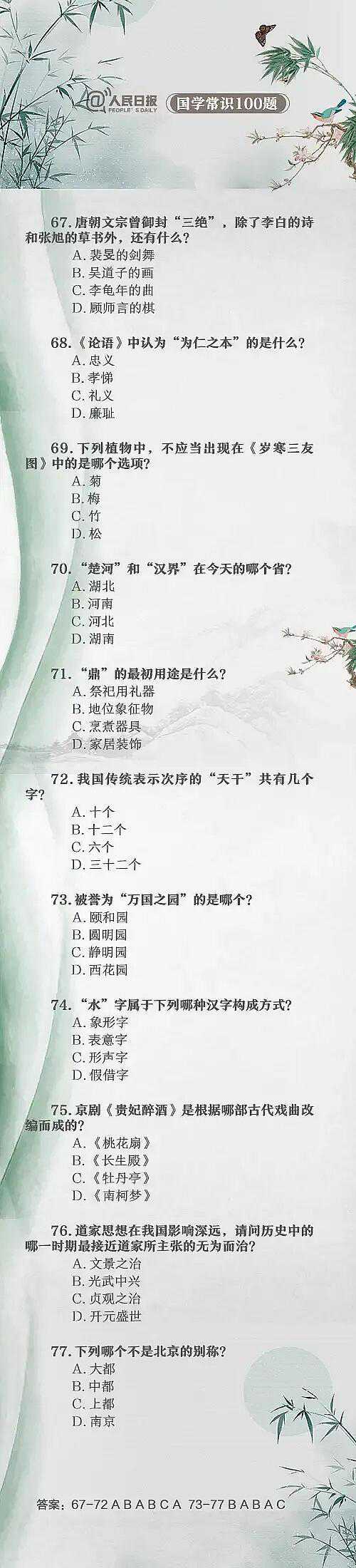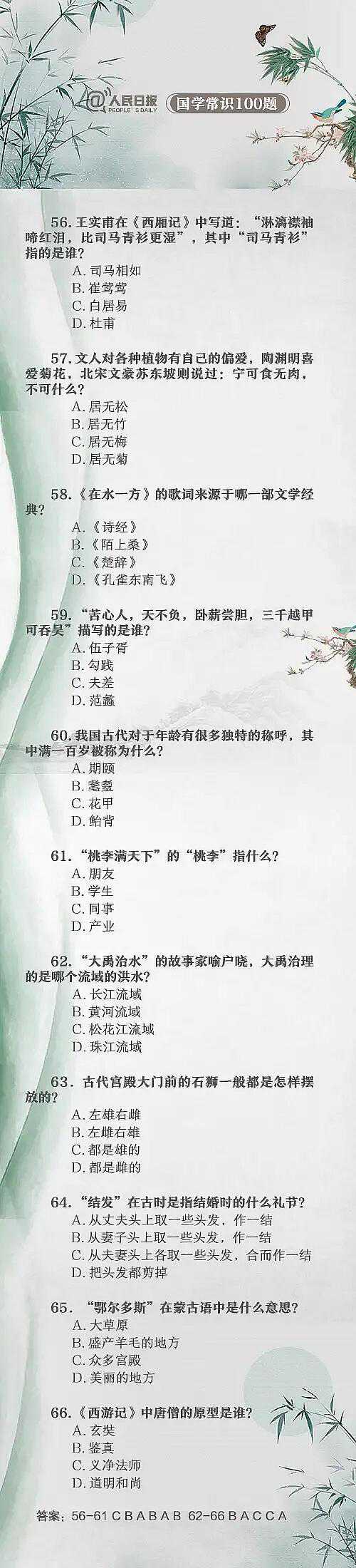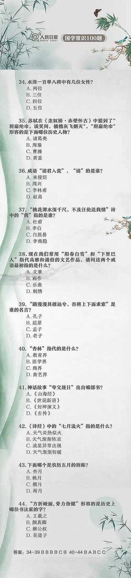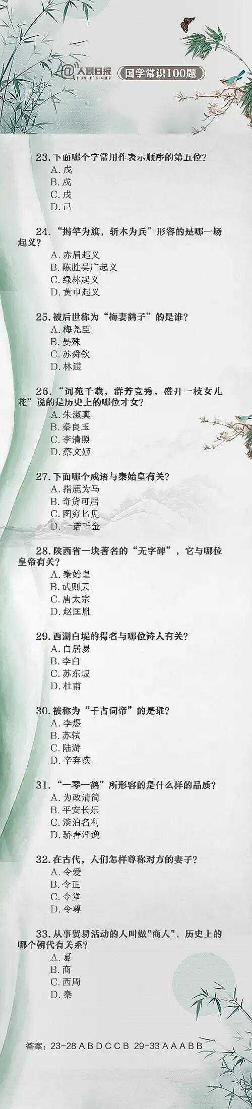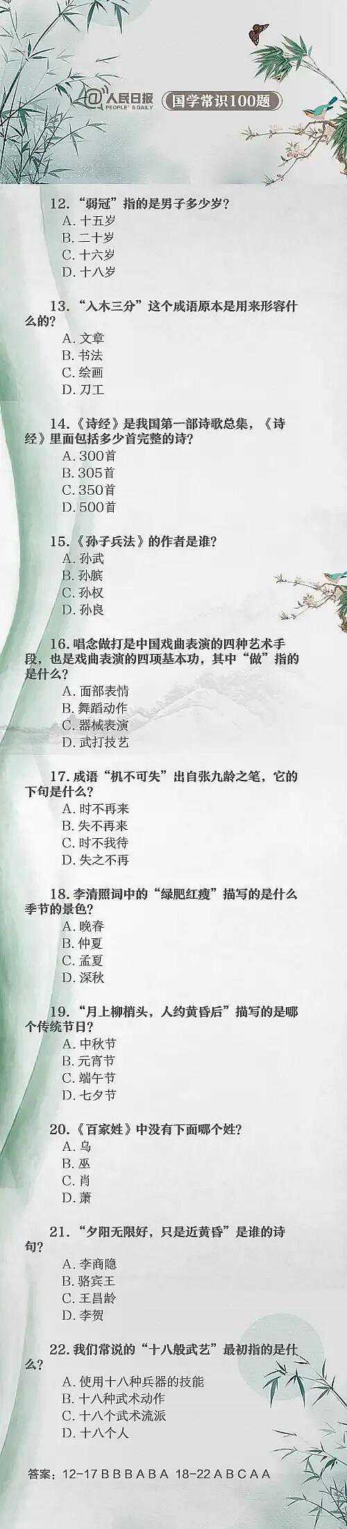 总结了100道中国文化常识题,能答对20题就算得上学霸了,尖子生能答对50题,而100题都能答对的人更是少之又少了。