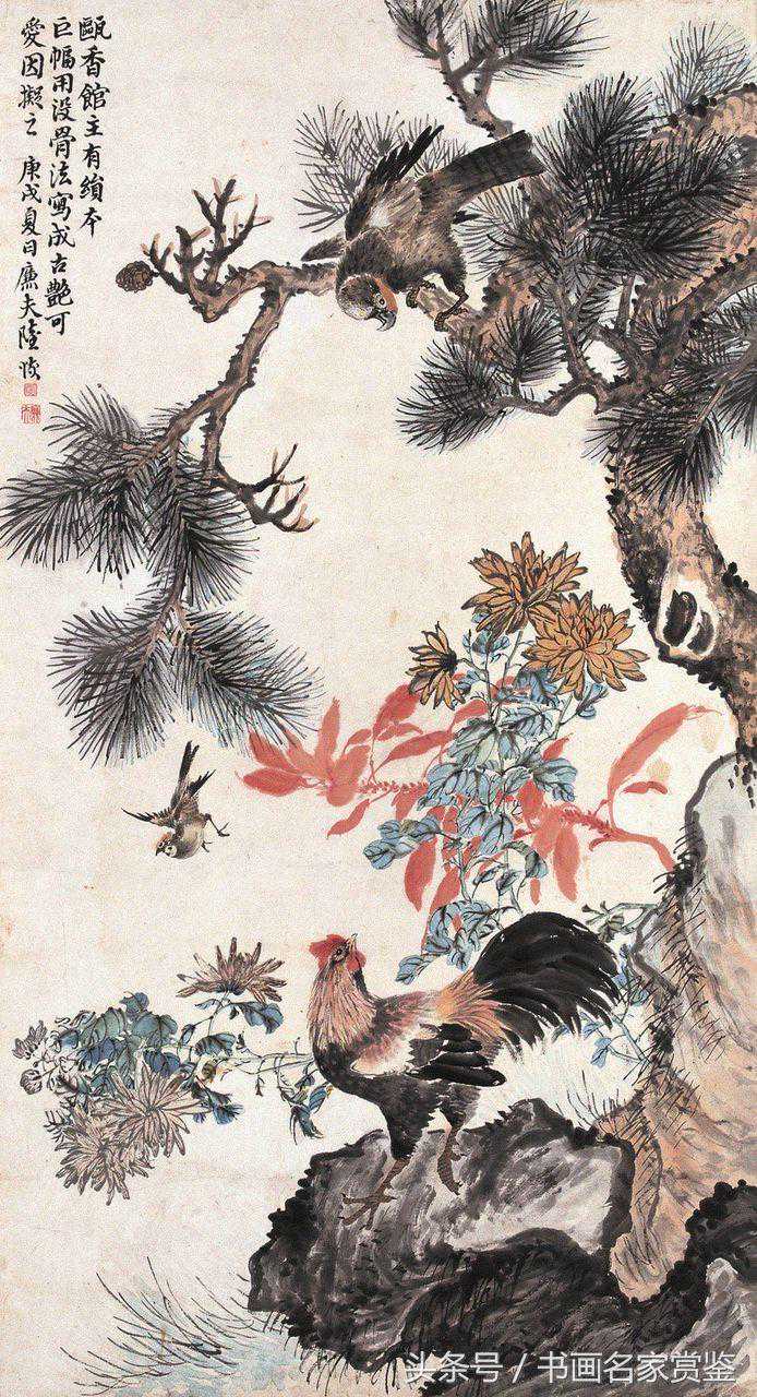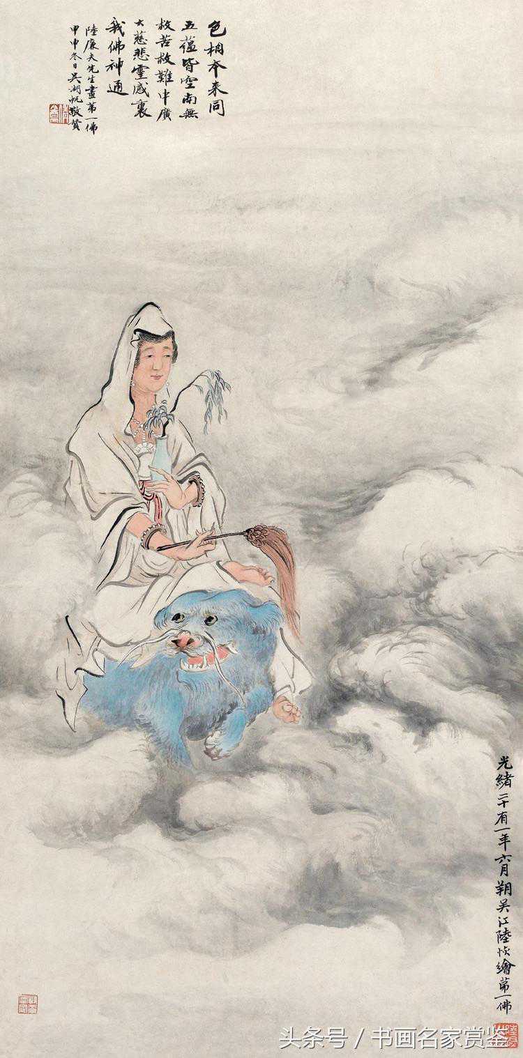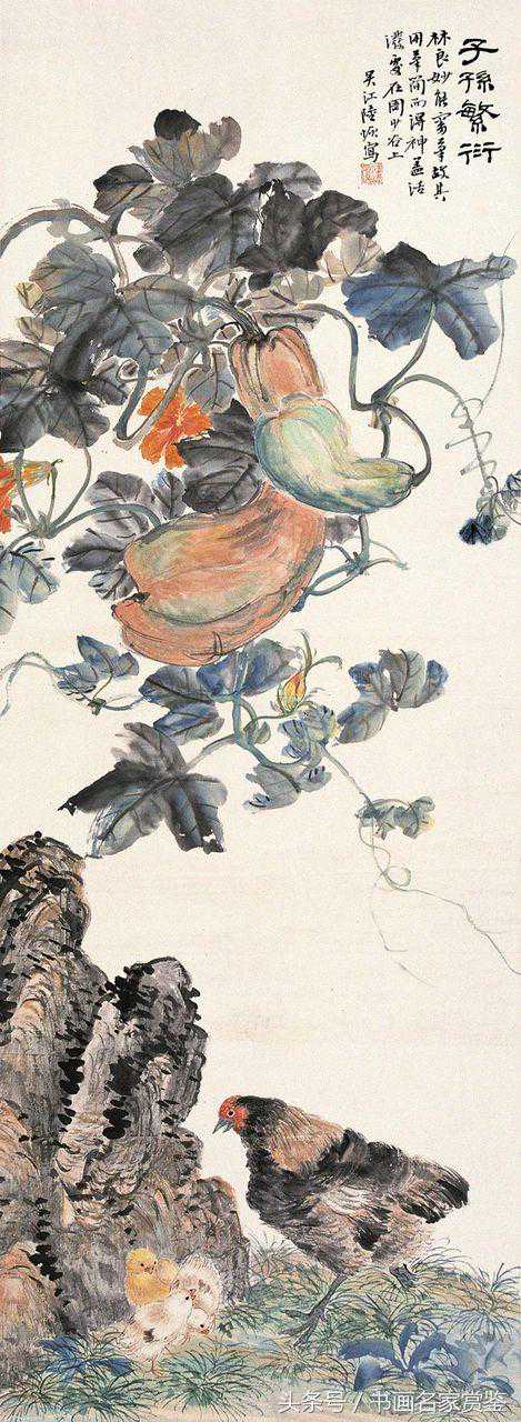 陆恢(1851—1920)清末民初著名画家。原名友恢,一名友奎,字廉夫,号狷叟,一字狷盫,自号破佛盫主人,原籍江苏吴江,居吴县(今江苏苏州)。书工汉隶。画则山水、人物、花鸟、果品,无一不能。习花果、翎毛。尝过僧寺,覩十八应真像,即以纸墨画为描摹而归。后晤吴大瀓,相与谈艺,大悦,纵观吴之所藏,上窥唐、宋,下樵元、明,艺事大进。旋客吴幕,得游三湘,辽东名胜。所历既广,笔意益苍劲遒丽,古拙幽深。尝作衡山记游图八幅,认为生平杰作!是晚清著名的海派书画名家之一!!!