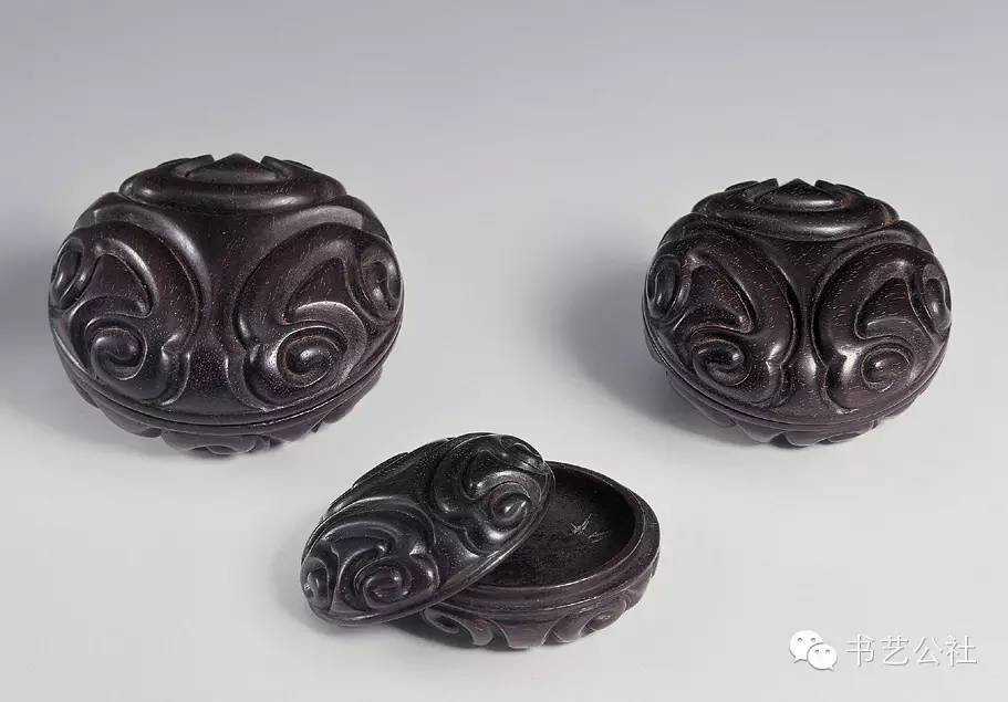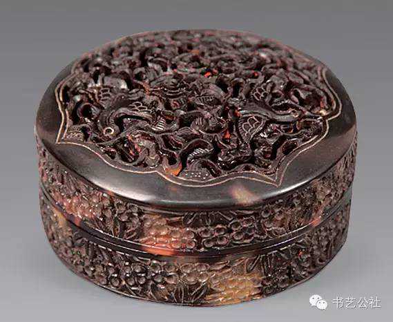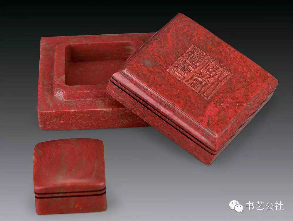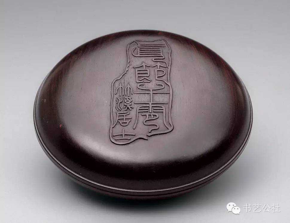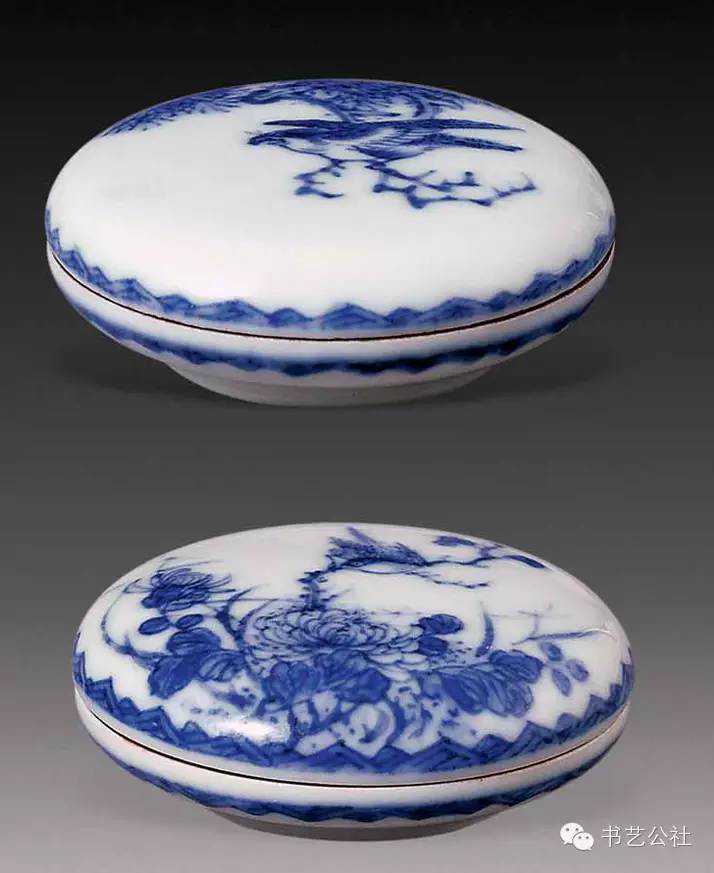 明代屠隆在《文房器具箋》中將印泥盒列為專項。印泥盒形式不一,以扁圓矮小者為常見,內盛印泥處十分平淺。所用材料有玉、石、竹、木、角、漆、金、銀、銅、鐵、象牙等多種,造型各异,雕琢精妙,可用可賞。前人有云:“印色池,唯瓷器最宜。若瓦器,耗油。铜锡有锈。玉与水晶及烧料俱有潮湿之弊,大害印色。近有以石为之,亦不适用。”