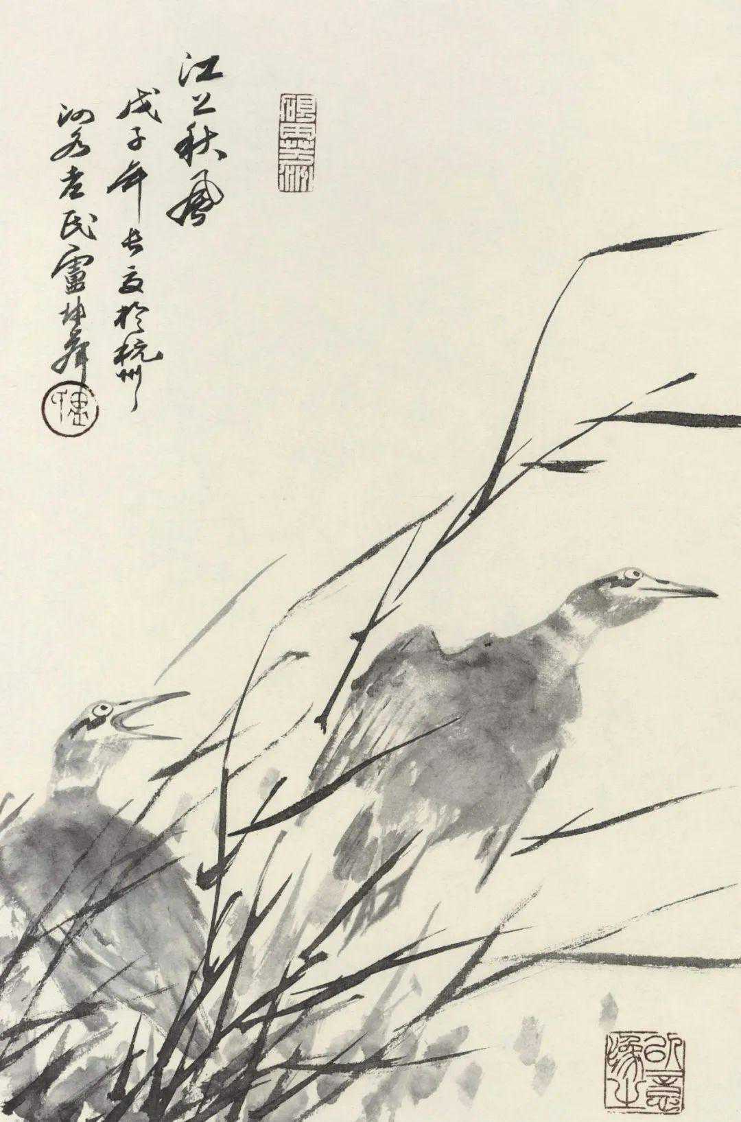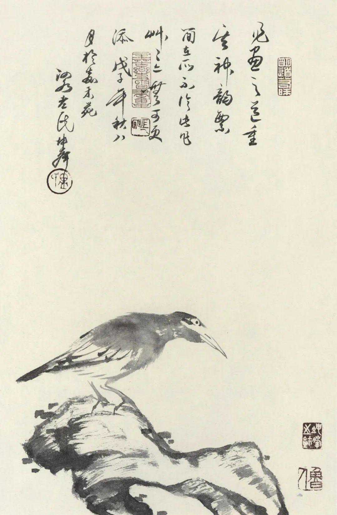 卢坤峰,山东泗水人,生前为中国美院教授,出潘天寿、吴茀之、诸乐三诸先生门下。浙江书协顾问章祖安评价他:“早岁擅工笔,入手宋元,于赵佶、李迪、王若水等研讨尤久,得具深厚功底。后专力写意,特精水墨,寝馈青藤、白阳、石涛、八大及扬州诸家,心慕手追,探其意蕴笔墨精华。