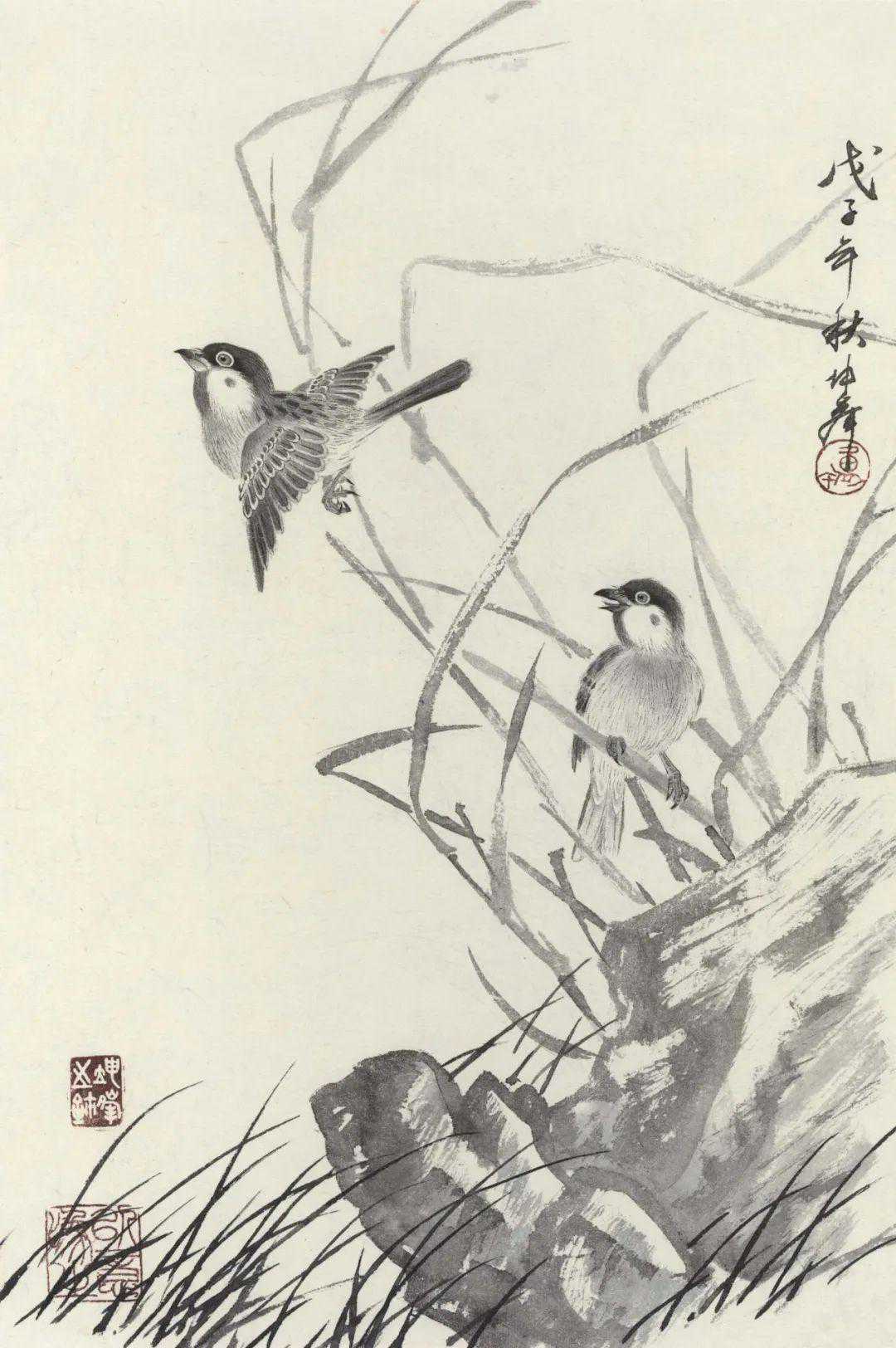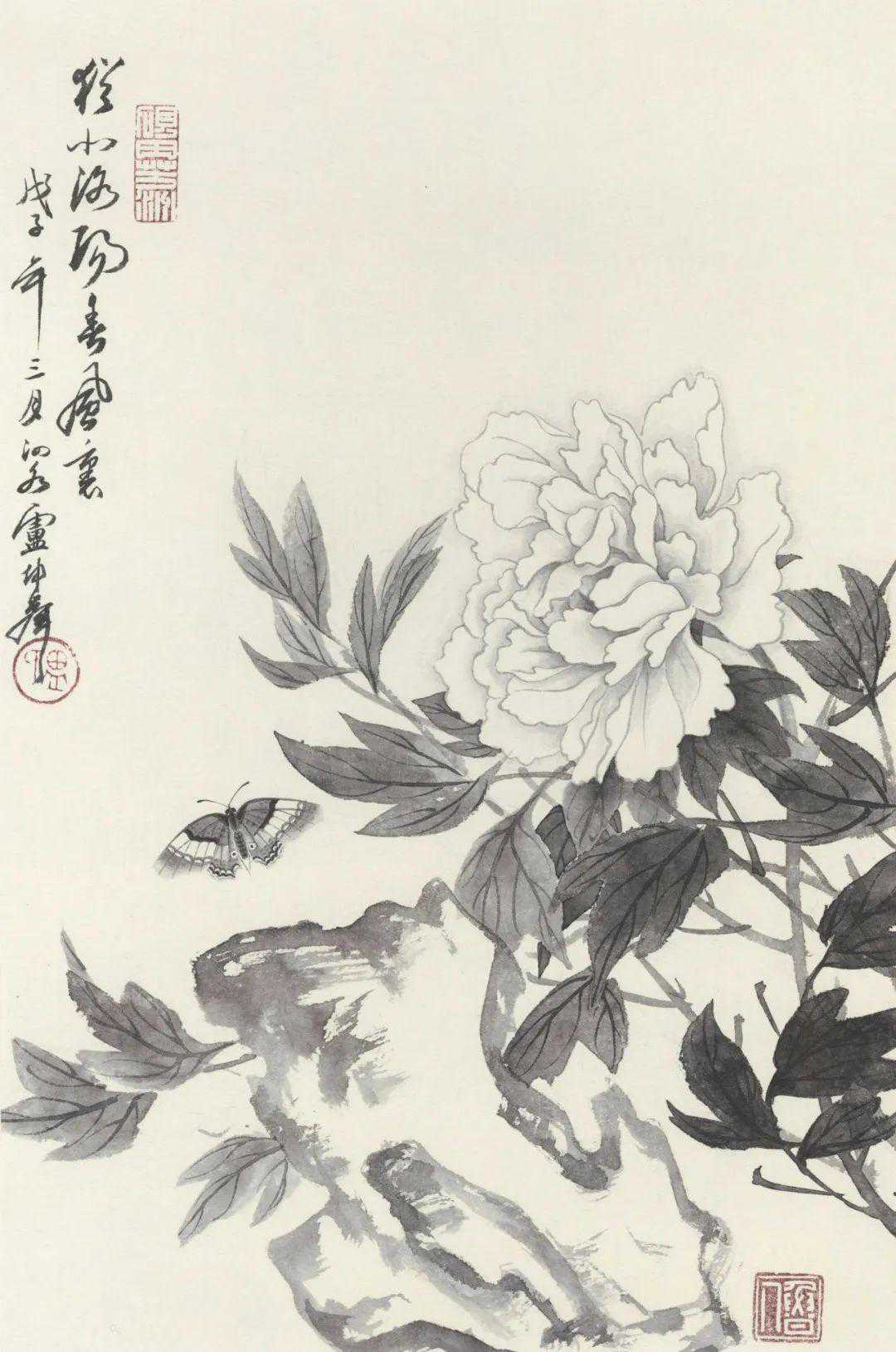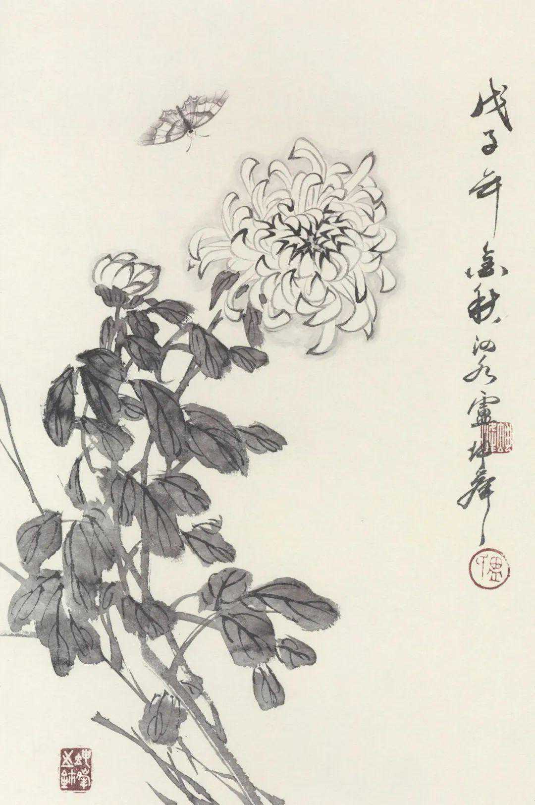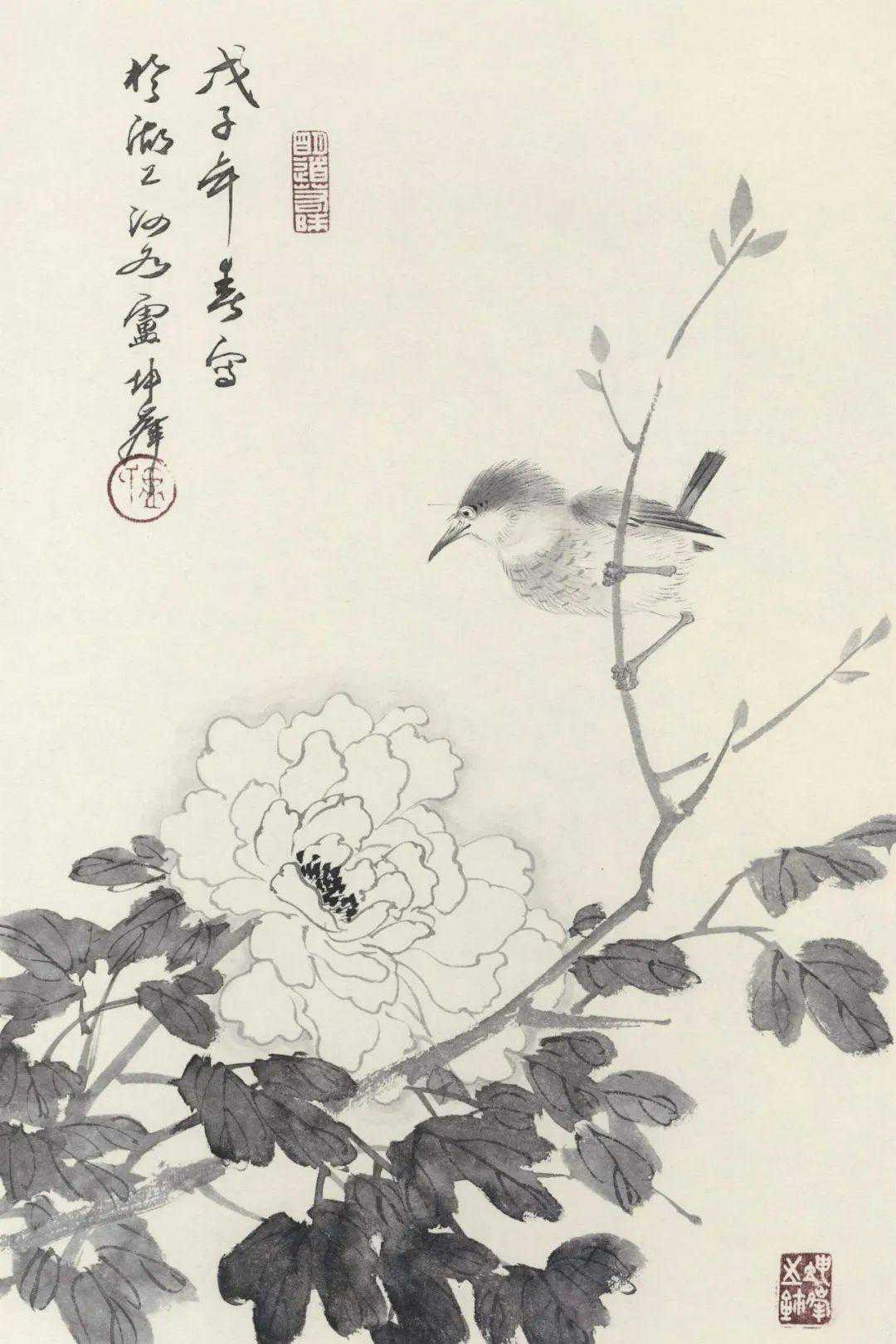 又好写生,无虑名卉珍禽,山花野草,均喜收揽笔底,所积粉本,倾筐盈箧。名师悉心指授,己复劳身苦心。绘事而外,于传统学问,无不广为涉猎;尤喜诗词书法,时时吟诵临池。此盖余所谓孜孜矻矻者也。”