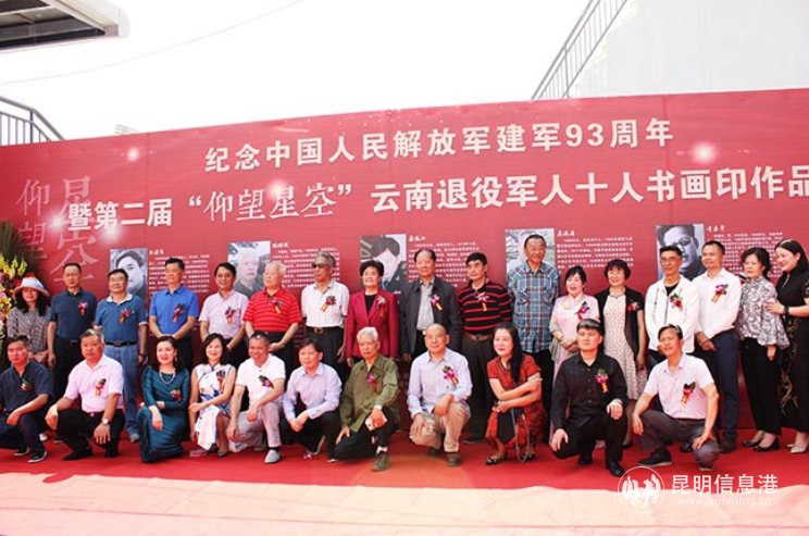 昆明信息港讯记者孙红亮铁血致敬军旗红,丹心书写英雄花。8月1日上午,纪念中国人民解放军建军93周年暨第二届“仰望星空”云南退役军人十人书画印作品展在昆明市新亚洲体育城星耀艺术会馆正式开展。展览将持续至9月1日,对市民免费开放。