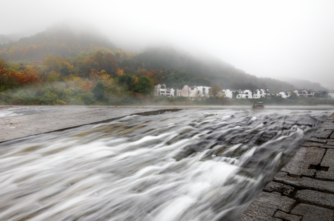 “渔梁坝”是新安江上游最古老、规模最大的古代拦河坝,被称为“江南都江堰”。徽商最兴盛的时候,宽阔的新安江上千帆竞渡,挑夫与商人穿梭在码头与商行之间,繁华的景象延续了数百年之久。