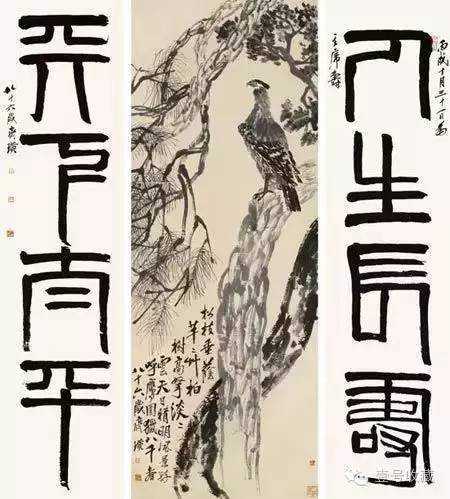 齐白石《松柏高立图·篆书四言联》