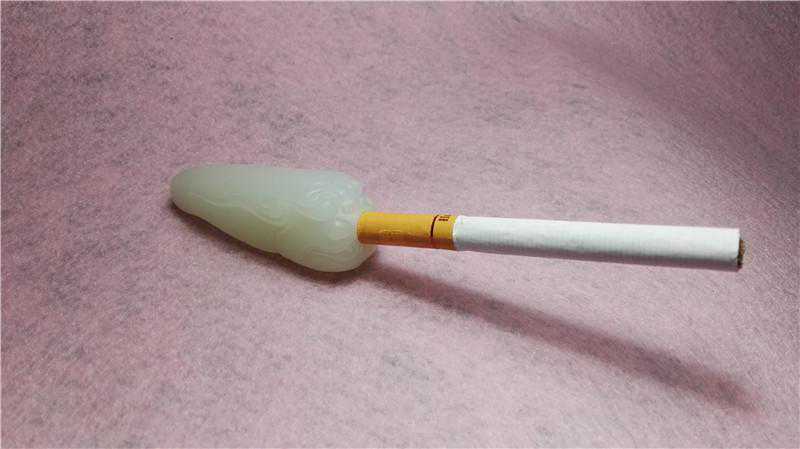 这本是一块边角料,三角形的边角料。为什么突发奇想做这一件作品,本来不管做什么都会有它的市场需求。另一方面,原材料比较接近,制作成烟嘴可以将料子的保留最大化。所以烟嘴就这样诞生了。