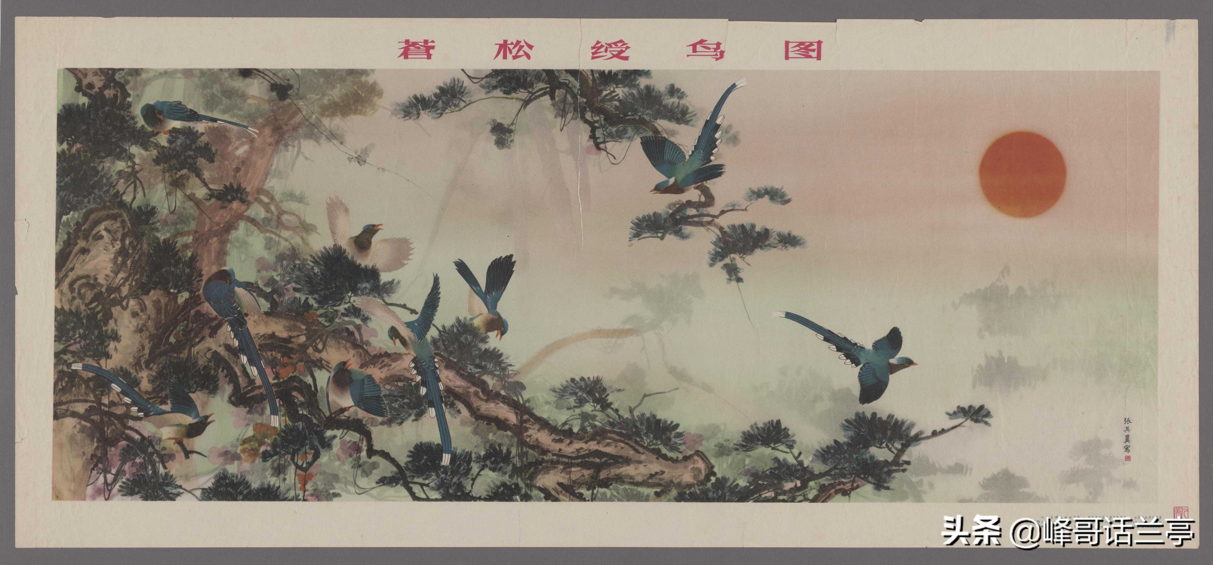 苍松绶鸟图.张其翼