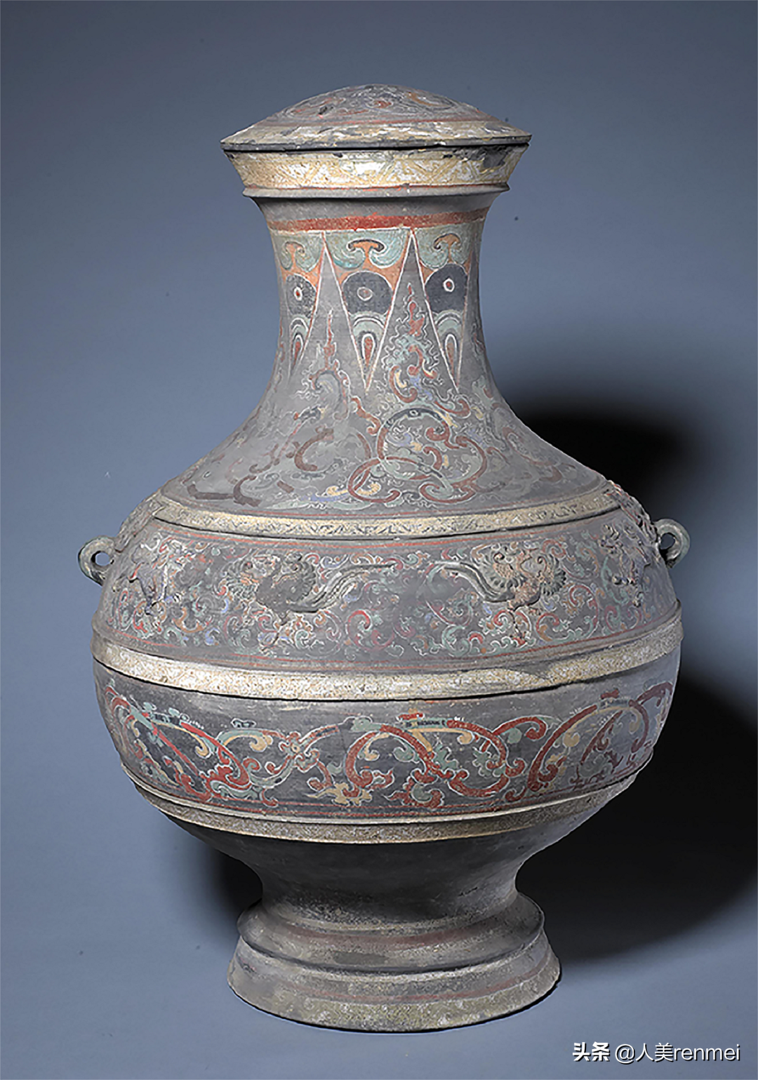 西汉凸雕龙凤纹彩绘陶壶故宫博物院藏