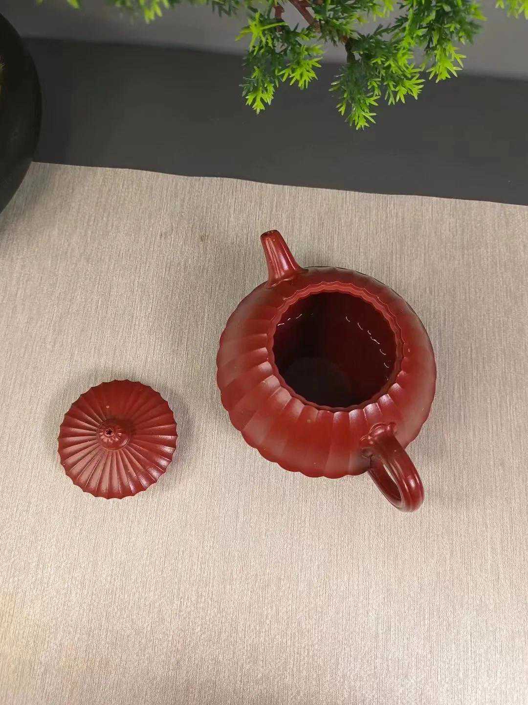 壶体上下扣合紧密,做菱花状,花瓣大小合宜、纹路清晰流畅,将筋纹器的精气神展现得淋漓尽致,气韵含蓄而不失气度,线条灵动而变化万千,形成曼妙多姿的视觉效果