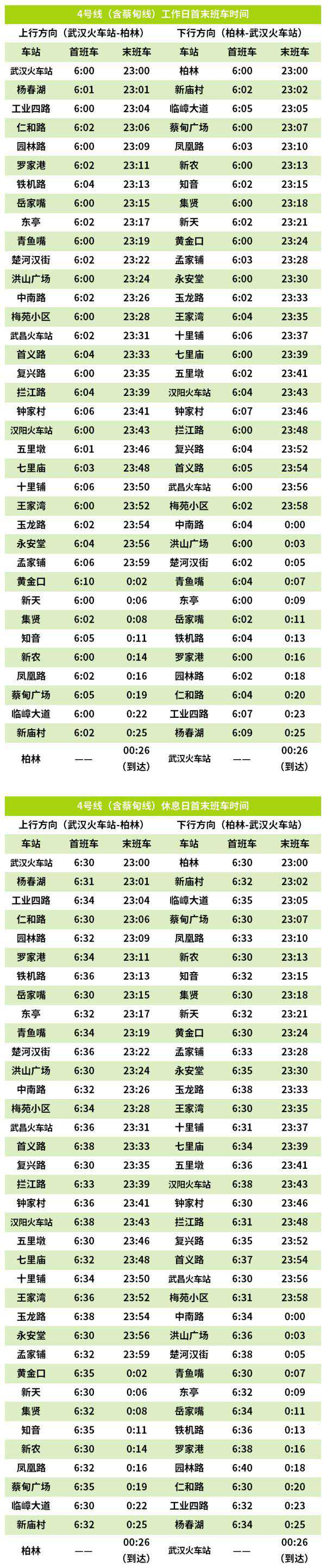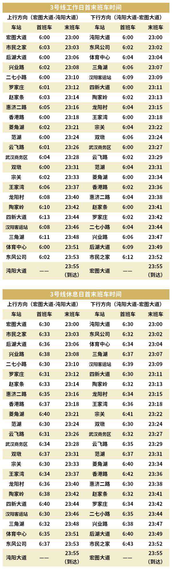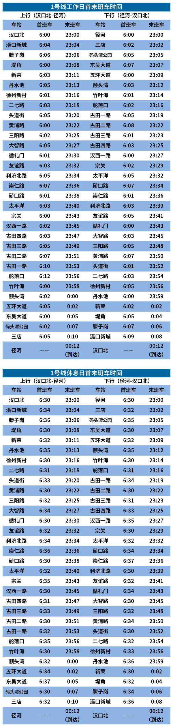 首末班车时刻表